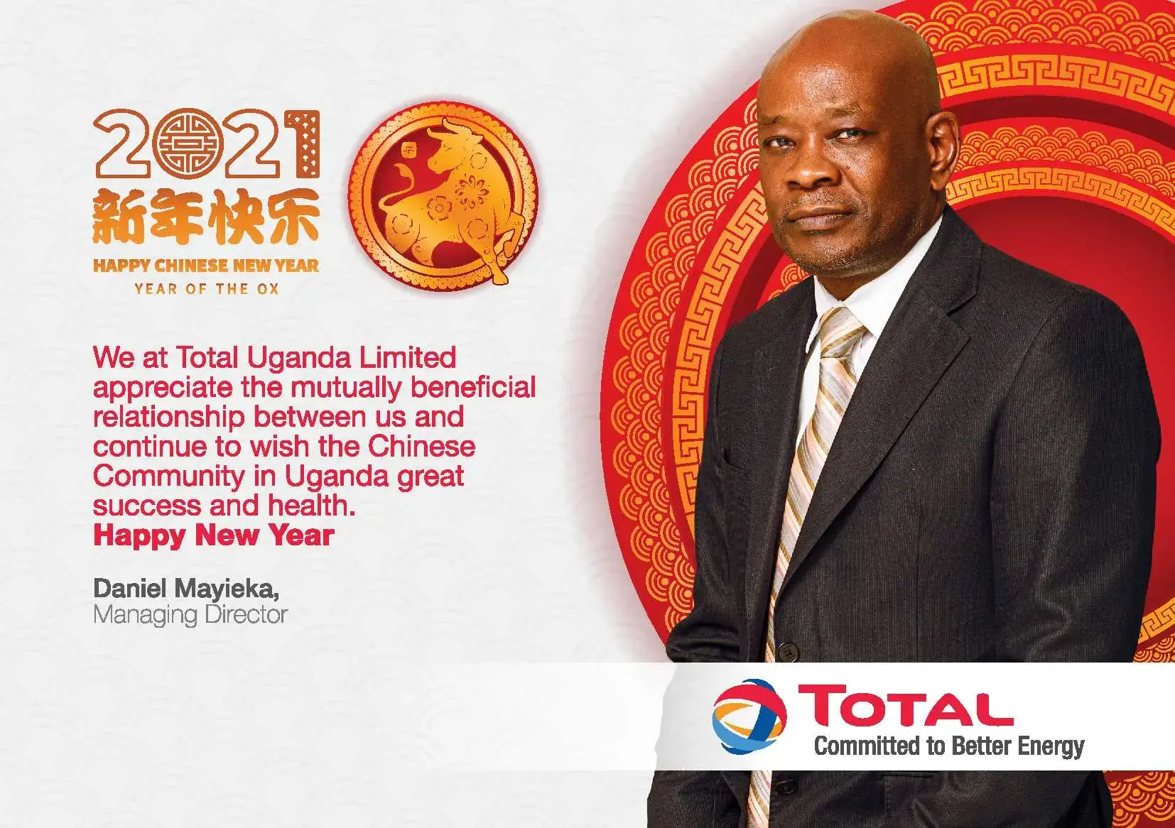 MANAGING DIRECTOR'S CHINESE NEW YEAR MESSAGE "Our wish from Total Uganda is that we...
